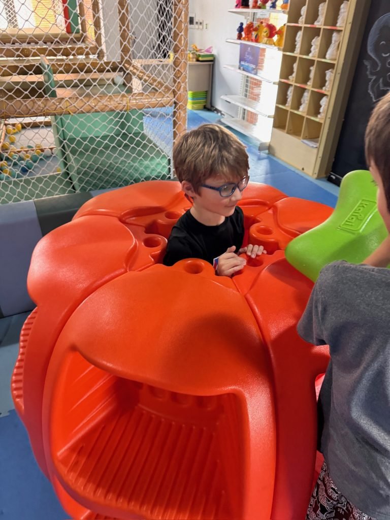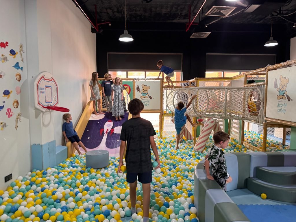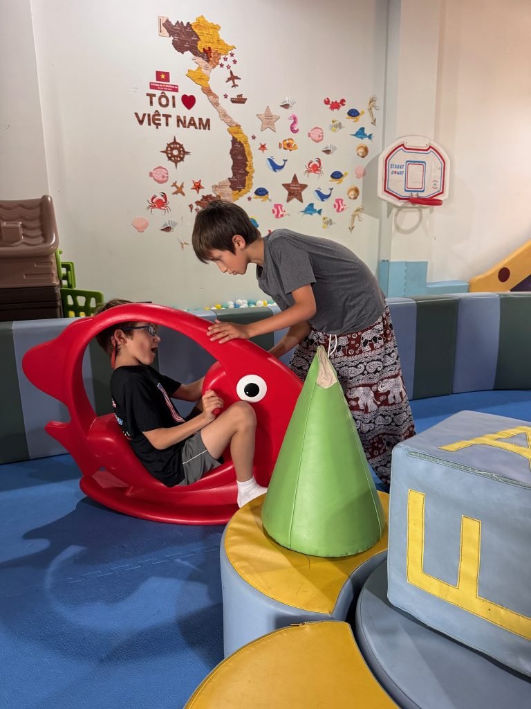 One of the things we did most often during our trip was play with our friends at the play area at our hotel. We would go there almost every day because it was so much fun. The play area had lots of space to run around, and we were always excited to see who would be there. We laughed a lot and made up different games to keep ourselves entertained.