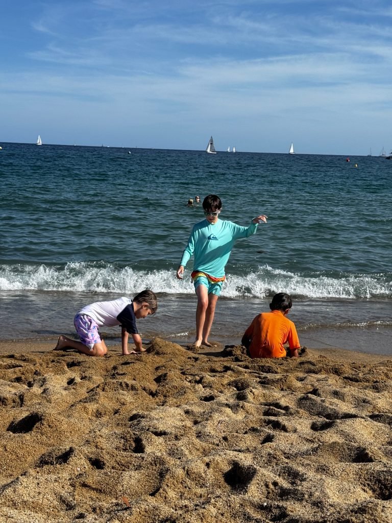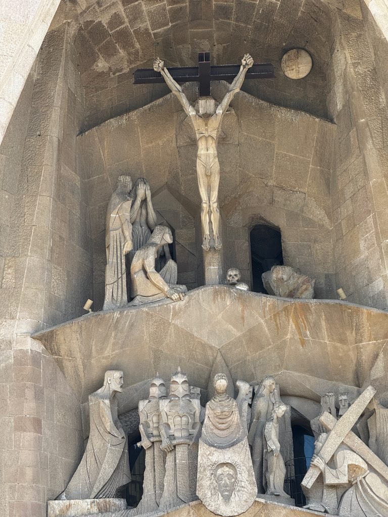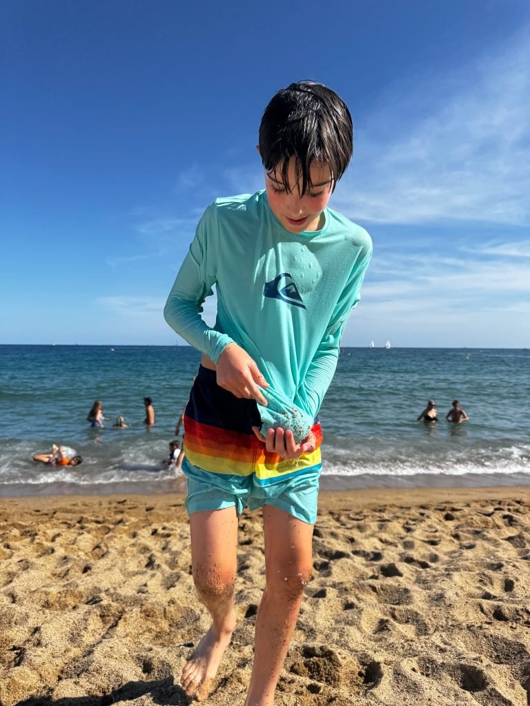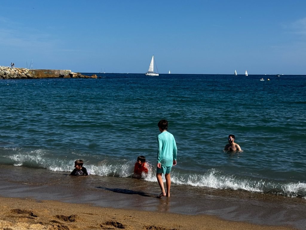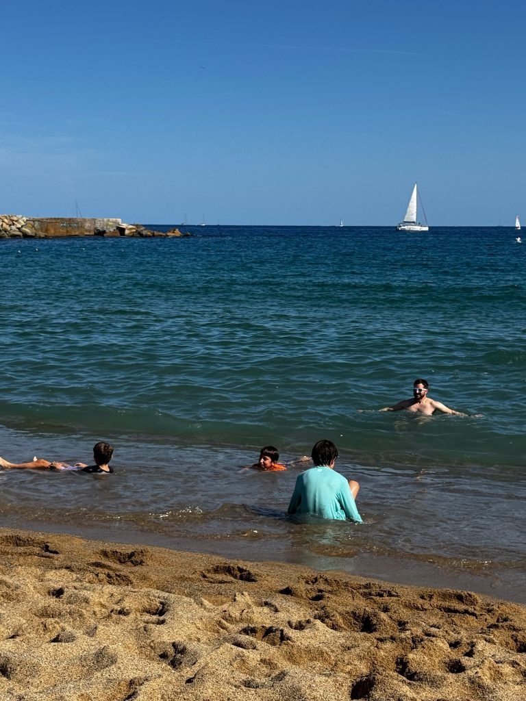 When we woke up we did all the normal stuff but then we went to La Sagrada Familia. It was being built for centuries and is said to finish in 2026 .Then we went to Casa Batllo. It was made for a noble family by Anthony Gaudi. It was very different compared to other houses. I liked that it was like the ocean. I did not like it because is was so tall. After that we went to the Barceloneta beach. The water and sand were fun but right when we got out to play in the sand, we saw a bunch of jellyfish in the water. Oh and lots of cigarettes everywhere.