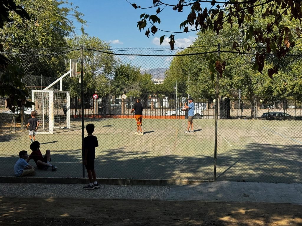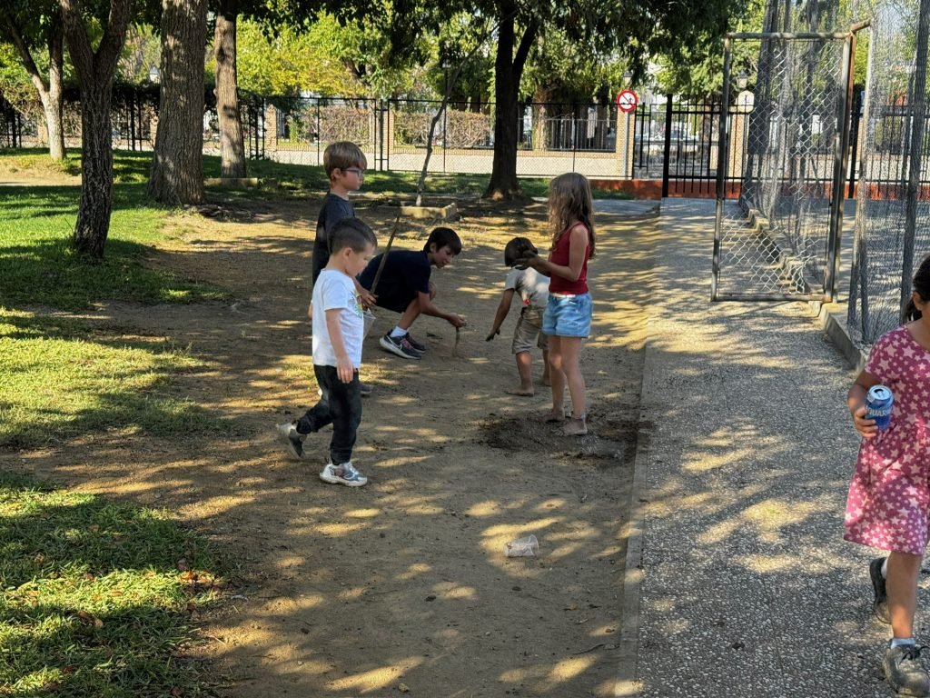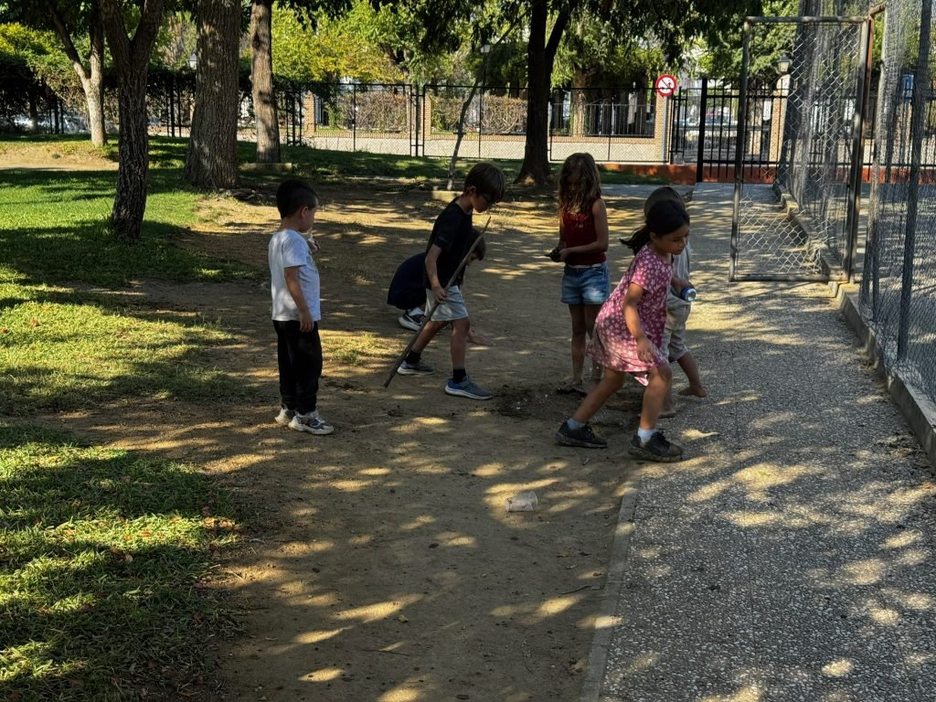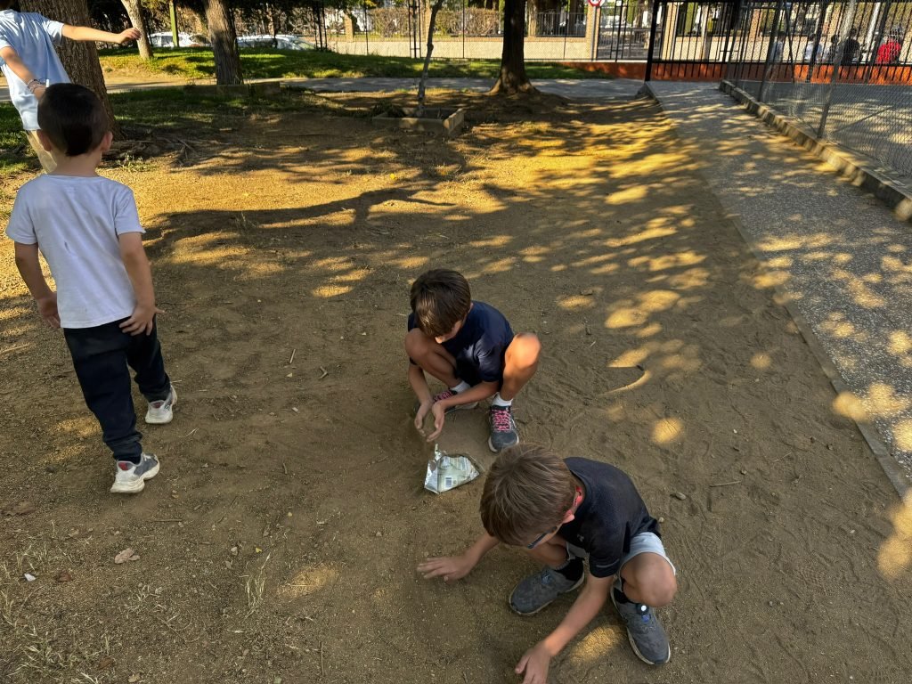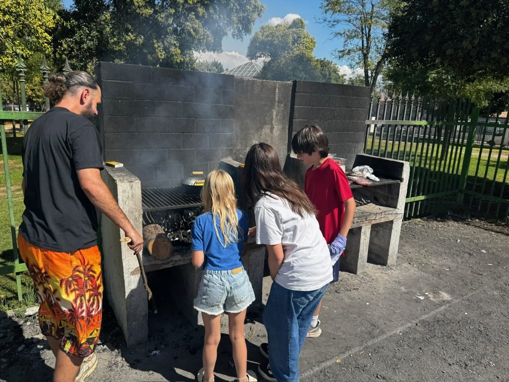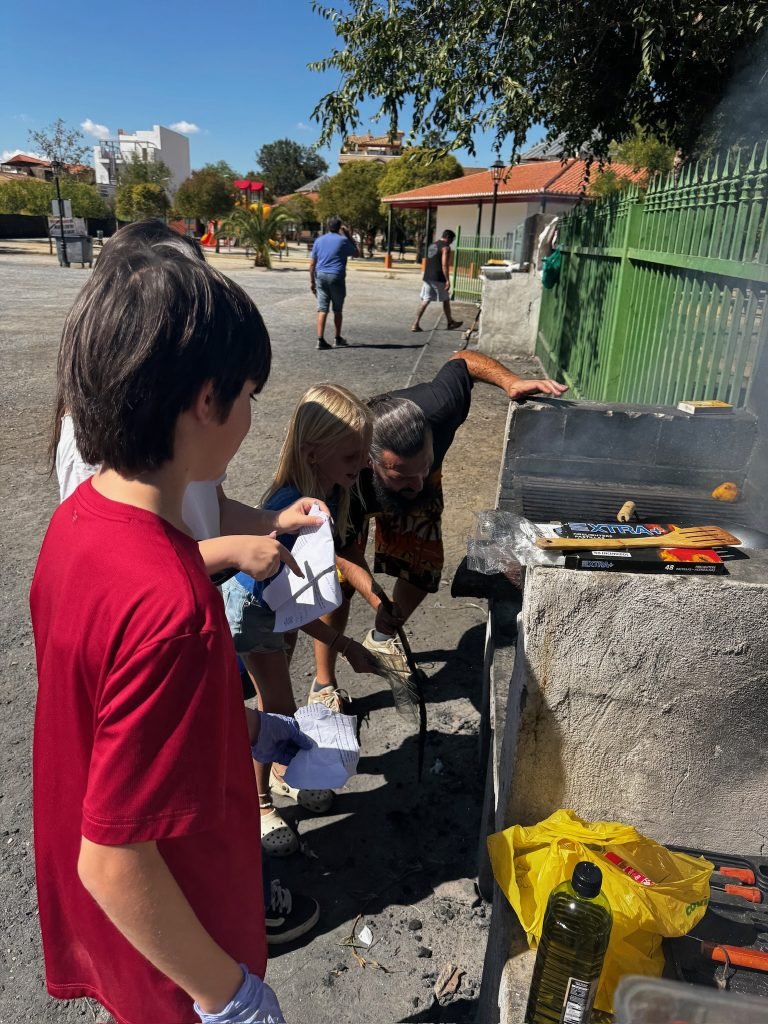 After class we played on the playground. It was made for little kids so we hit our head A LOT. We peeled and cut potatoes and onions while some people cut carrots. We were making Spanish tortillas. Finn was helping with this while one girl threw her spanish paper in the flames to make it grow faster. When it was done we had a schmorgashborg. Once we were done eating we had a Kids VS Grownups soccer / Futball / Futbol. And somehow the kids won! Then some kids clogged the water fountain with “poop”.