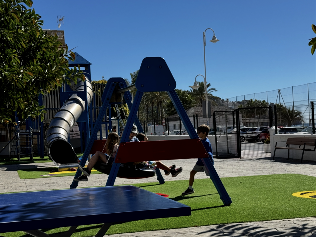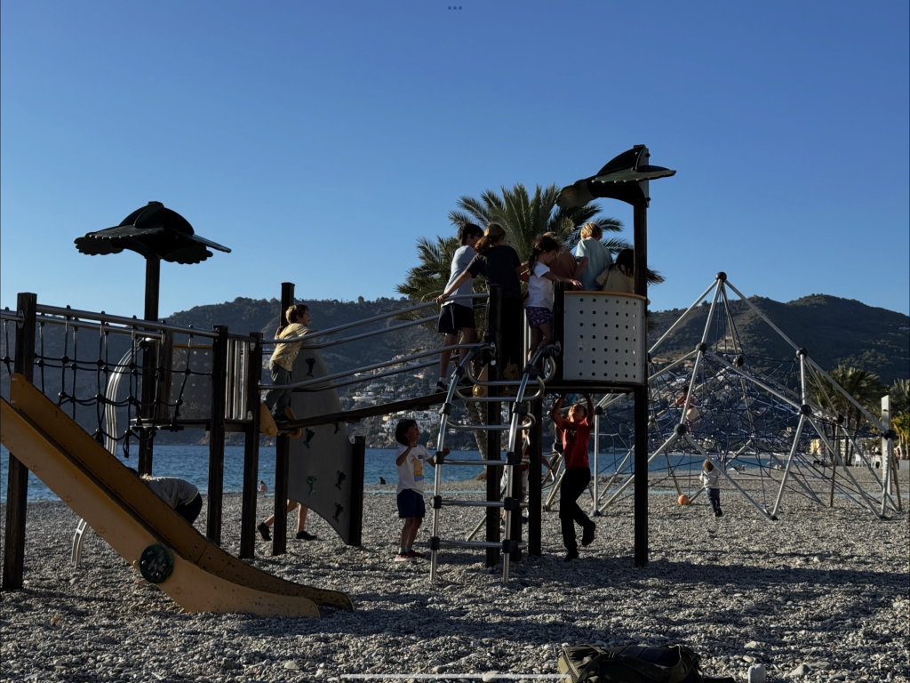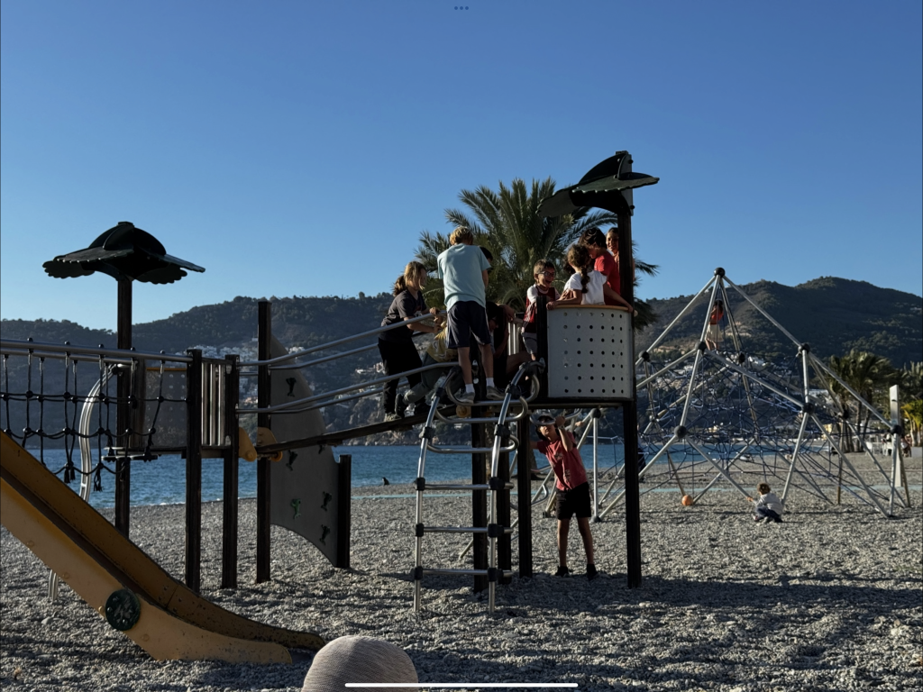 There were 3 playgrounds that we really liked and we played ball tag where one person is the tager and they try to tag the other people with the ball. We also played a game called Ultimate Tag where everyone is it and they try to tag the other players and if you get tagged you sit down but if they both tag each other they at the same time they play rock, paper, scissors. We also taught one of the friends we met there how to play a fun card game called Magic the Gathering.
