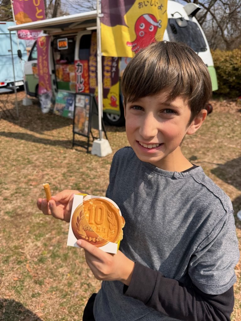 Today we are going to the Japanese Alps. A big park that is a 24 minutes to run there and 40 minutes to walk. There there was a big lot of food trucks, dances and a big playground. The playground had a SUPER big slide. It was so long it took 3 minutes to go down and it was FAST. The tough part was going back to the top witch took a lot of energy and time. There was also a good zipline and a climbing wall that led to a slide where you go to a wall and then go down another slide. After playing there for a good bit we went to find food. Me and nate got 10 yen sandwiches with cheese in them. After that we played some more. and more and more until we decided to go to the zoo. It didn’t have much and it was closed but we still got to look at the outskirts of it, There was peacocks, ducks, flamingos, monkeys, rabbits and tanookies (Tanookies are a animal in japan that is a mix of dog and raccoon. After that we started the trek home witch took a while since we were walking. When we got home we settled for a bit and then got ice cream. I got blood orange flavor that I thought was really good, Nate got mint choco chip, Finn got something that was caramel and our mom got a really dark chocolate. After that we went home ate dinner then went to bed.