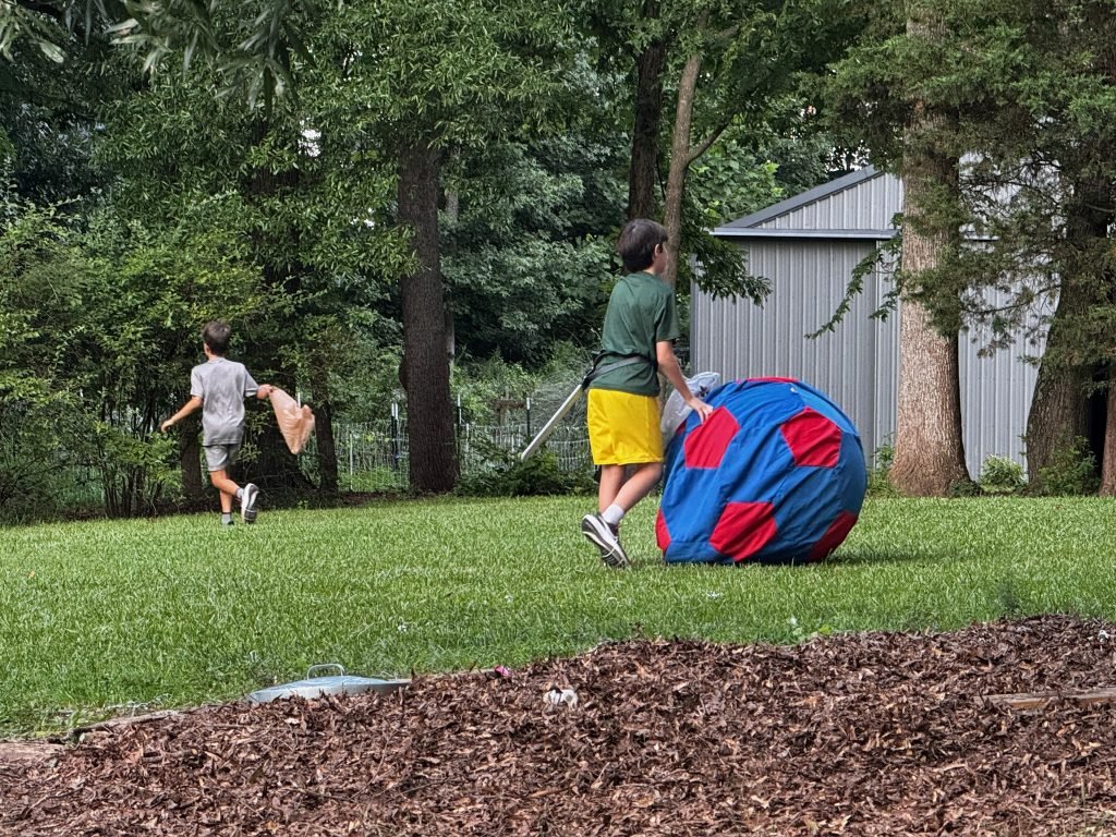 We also said LOTS of birthday Goodbyes. Our friend Oliver had a Paint bomb birthday. Nate, Daddy, Mommy and I (Wells), beat all the levels including the paint bomb – but we still got blasted anyway. Then we said bye at Joaquin’s swim birthday. Finally, my friend Forrest had a battle birthday with all of my buddies. We just did whatever we wanted with swords and other cool costumes and weapons. We started our own army and had a revolution that ended with candy “gambling.”