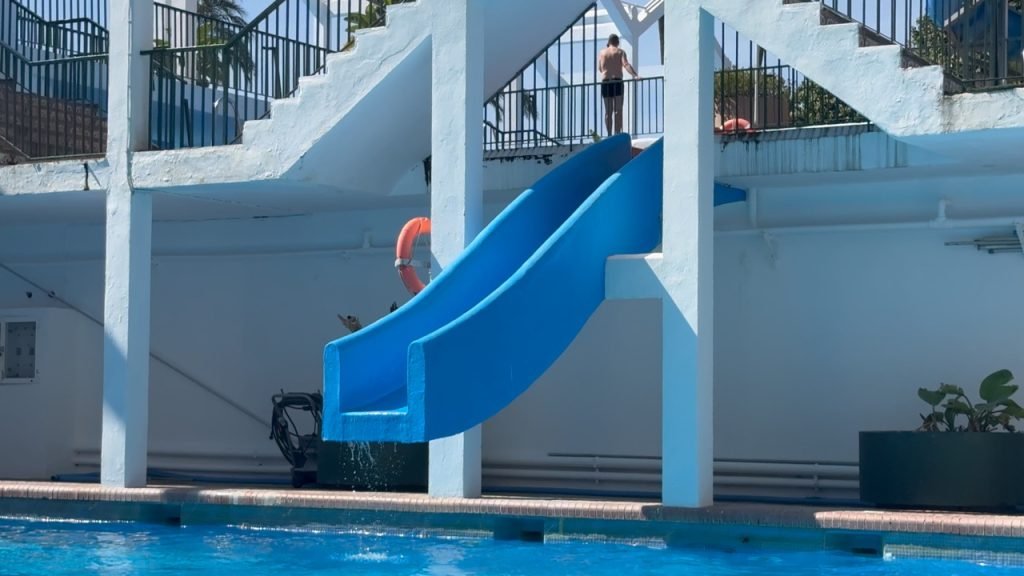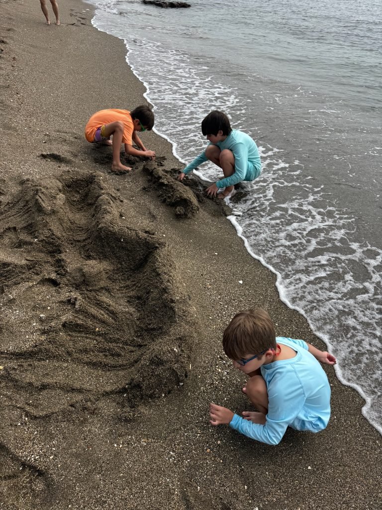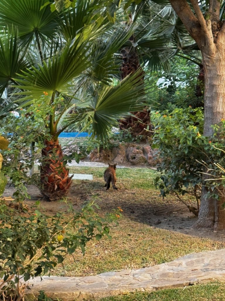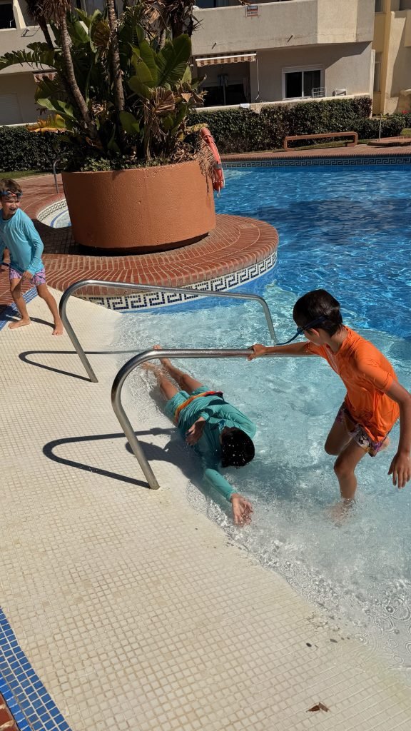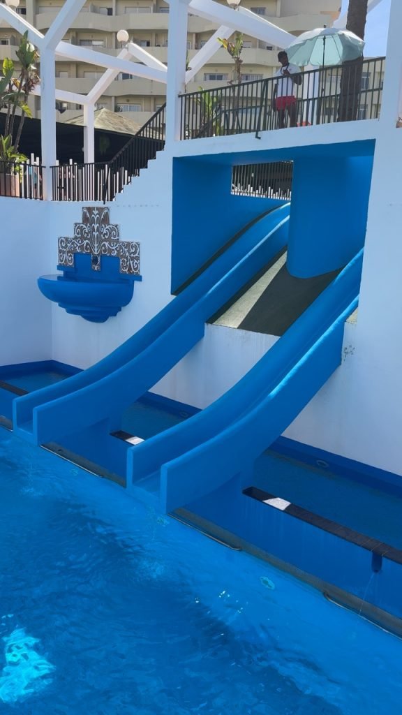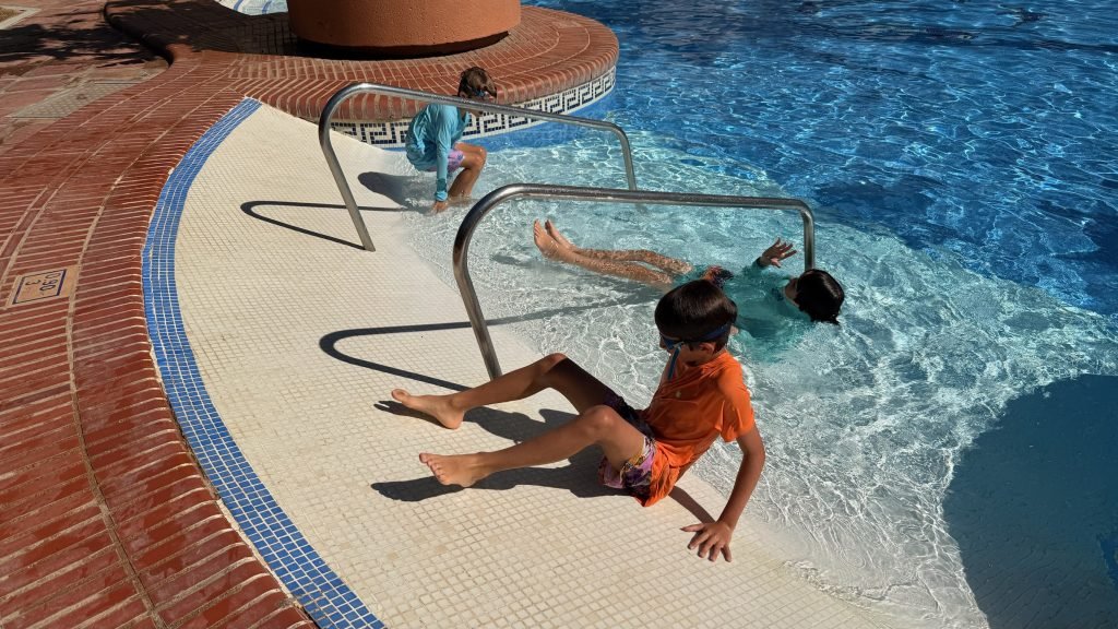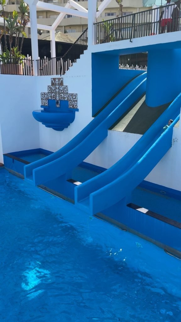 When we got to our hotel we couldn’t check in so we decided to get lunch at a British breakfast restaurant then we checked in and then went to the pool and saw that it had tons of slides and there was a bar in the water and near the end of the day when we were heading to a gaming store which sold Magic the Gathering cards we went through a pathway at the hotel that had a lot of cats. The next day we slid down the waterslides and played at the waterpark. And for dinner, we went down to the beach and found a restaurant that we ate dinner at and when we were heading back to hotel near a small red castle, there was a giant party with music and a lot of people dancing and there was food then we went back to the hotel.the next day we went to the beach and built a giant wall and the waves couldn’t get past it we also swim a little bit. It was very cold so we didn’t swim that much after that we went to the pool/waterpark again and for dinner we went to a marina and had food at an Italian restaurant and saw a giant Ferris wheel. The day after we went to the pool and the beach again and we went to a park with exercise equipment and ran around a lake. The next day we went around the park again but this time we went a little further and saw animals and a giant playground that we played on for a while, and when we were leaving we saw a bunch of cacti and after lunch, we went to Buddha temple and a place where you can look at butterflies