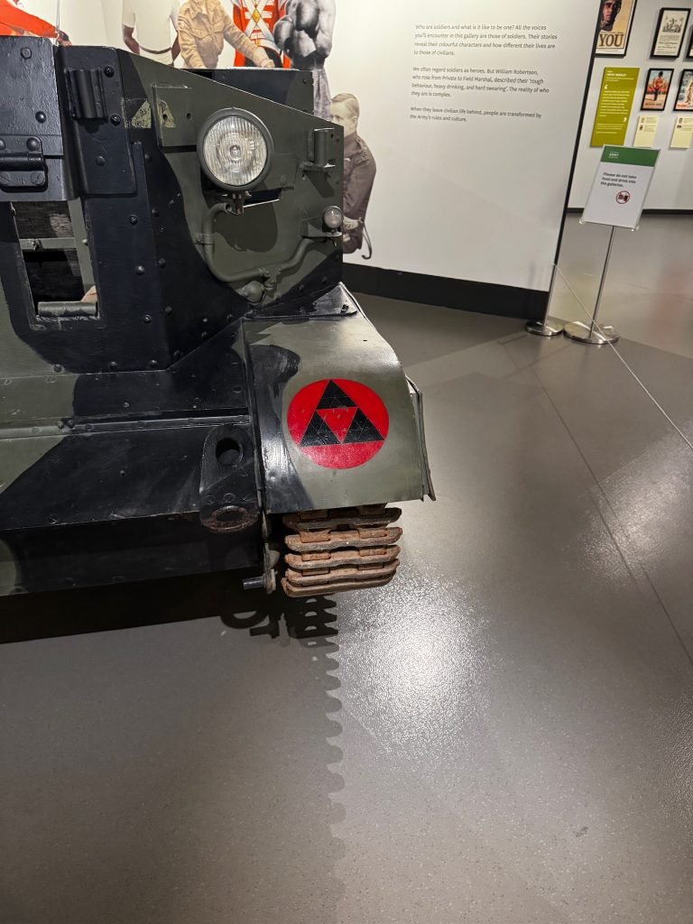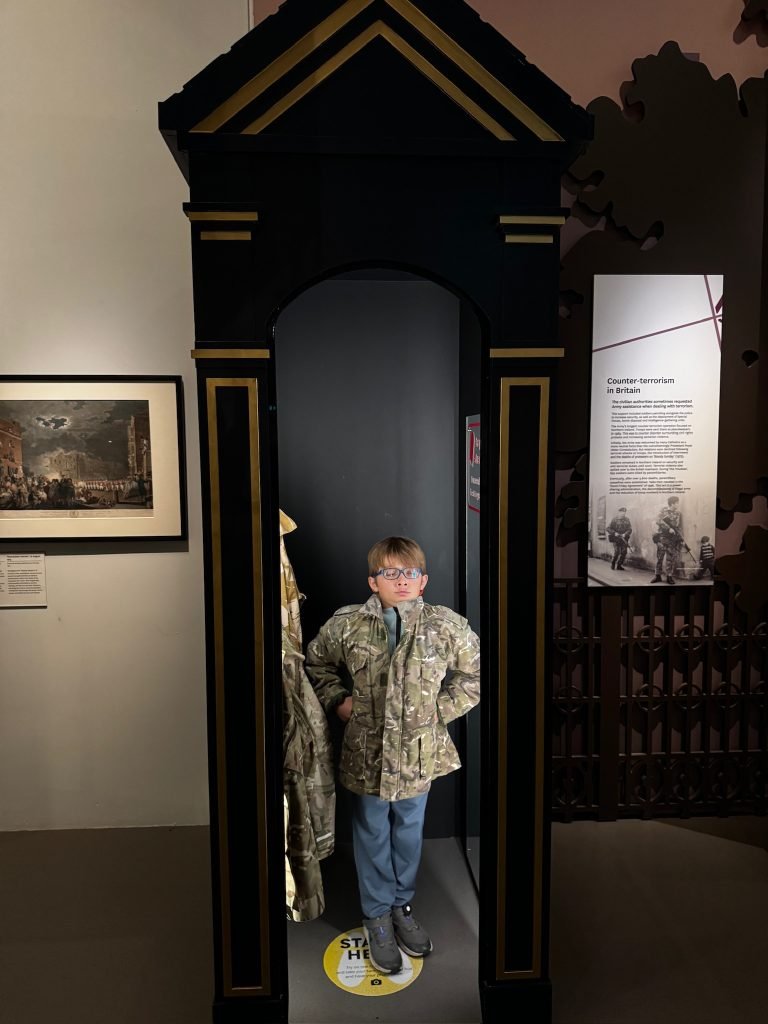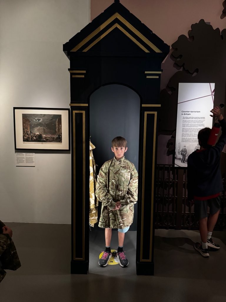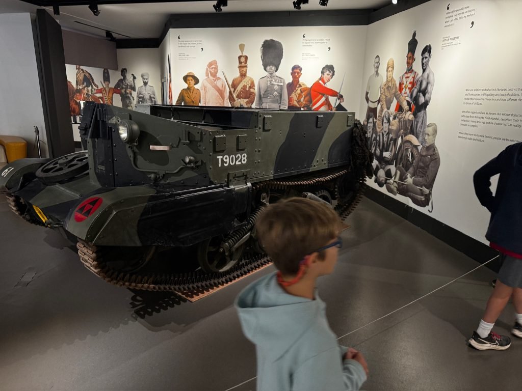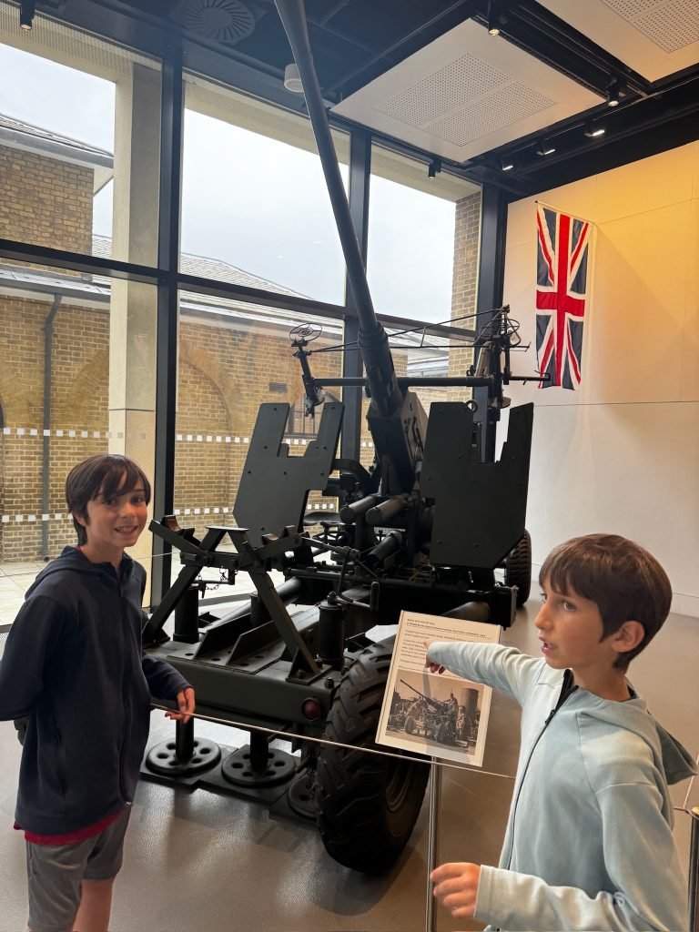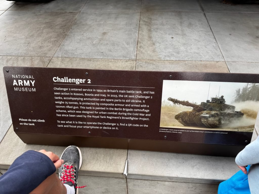 On our third day in London, we went to the National Army Museum of London. When we got there, we took a picture of a big tank. Then we explored the main floor (the 2nd floor) and saw some cool swords and guns, and read some history on the walls.