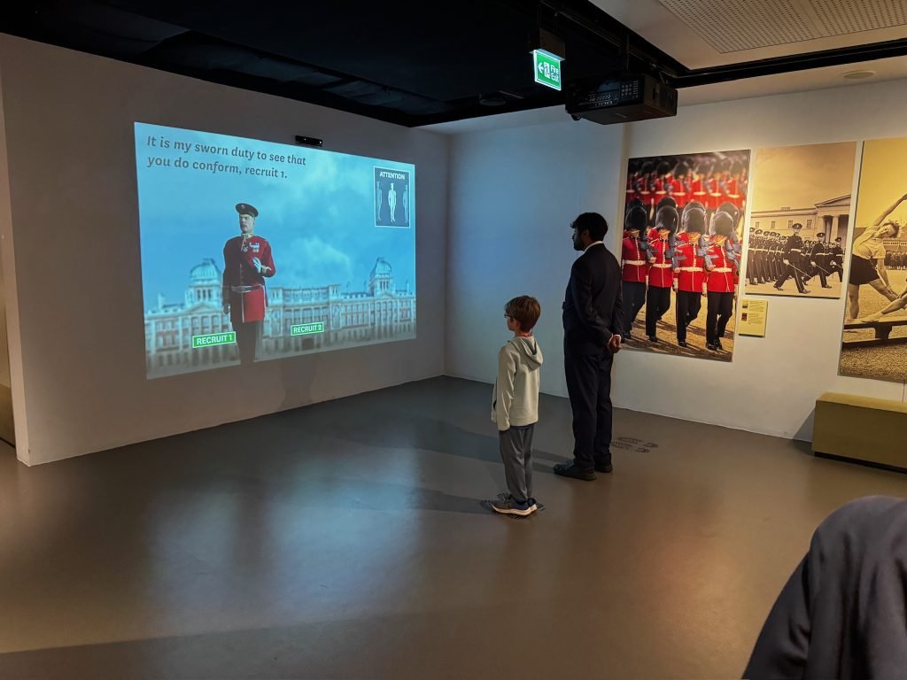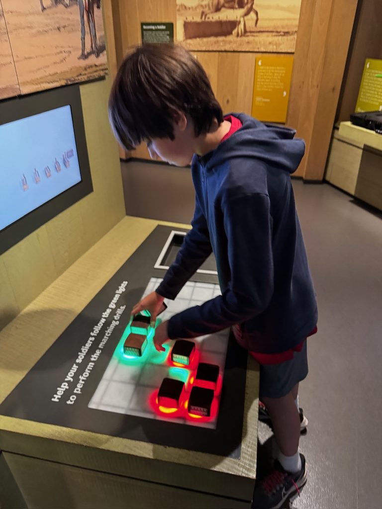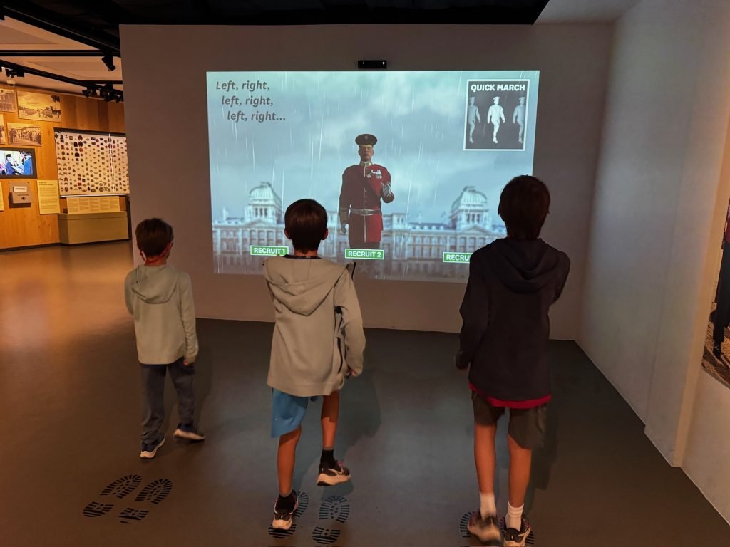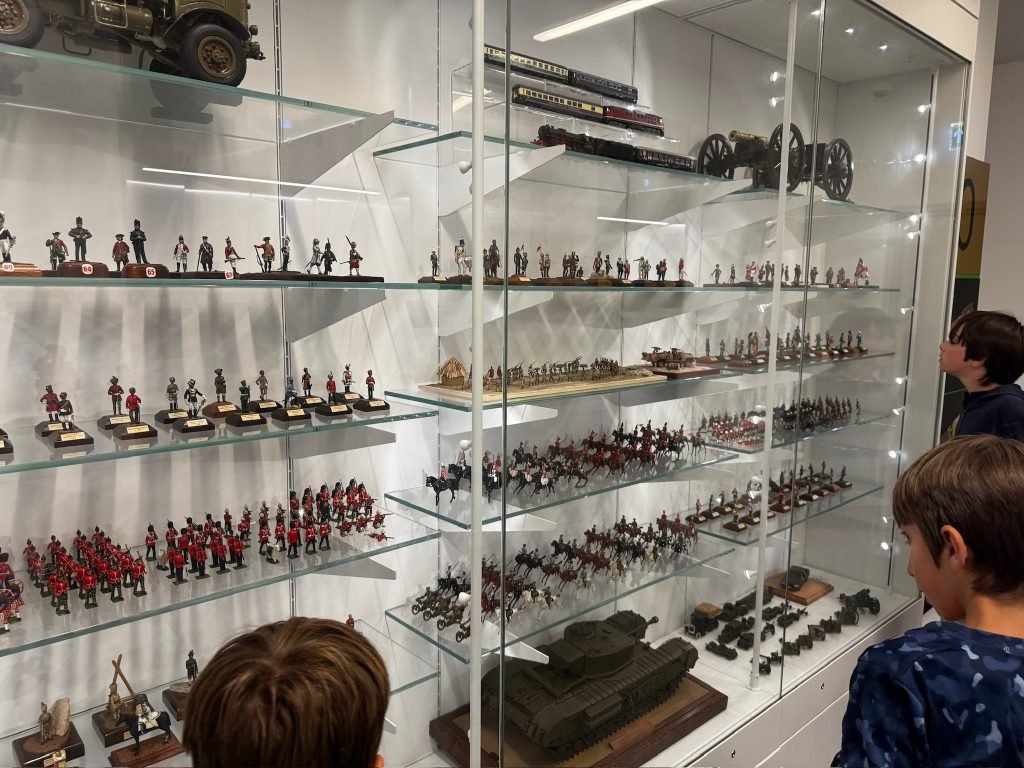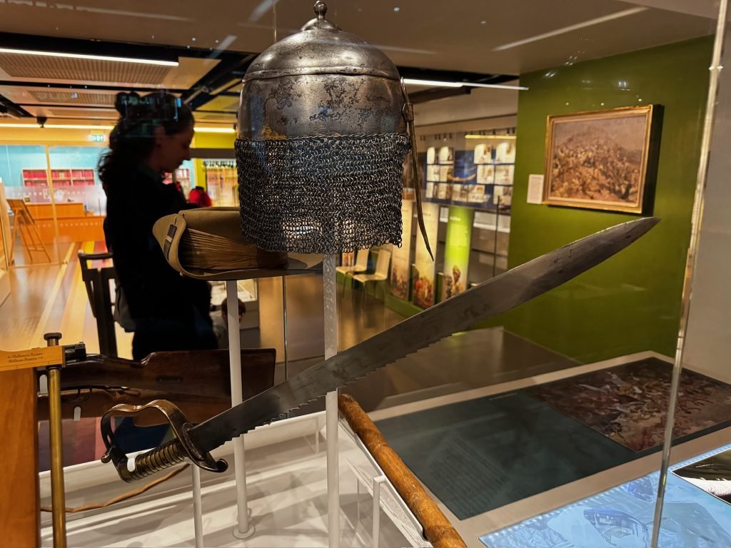 After that, we went through a big gallery with pictures, history, weapons, clothing, sculptures, and some videos. On one of the videos, there were people who had been in the army explaining what war was like—the food they ate, and their everyday life.
