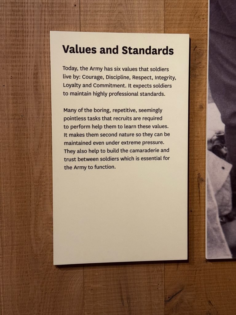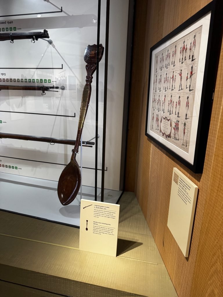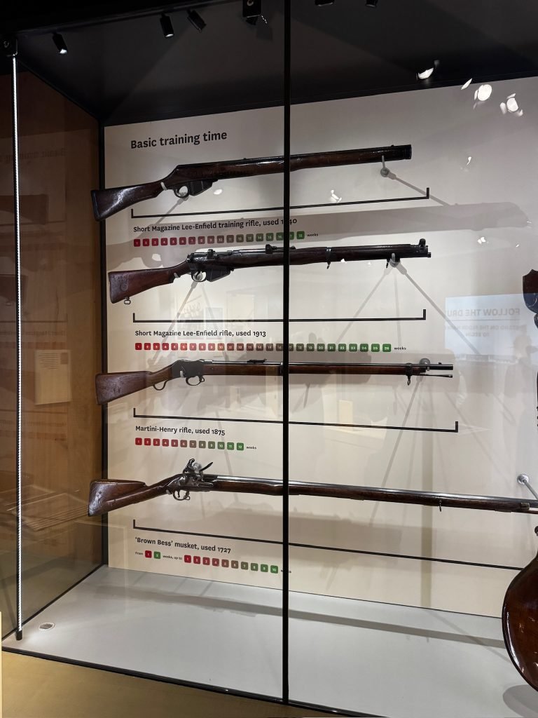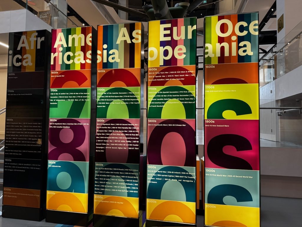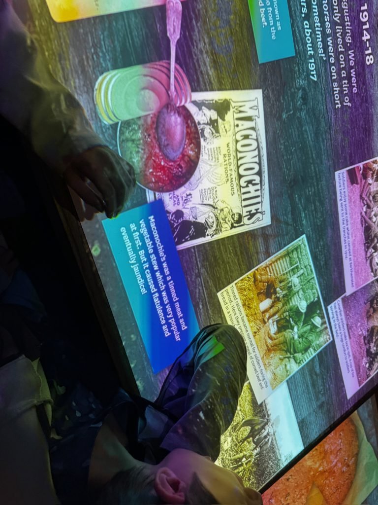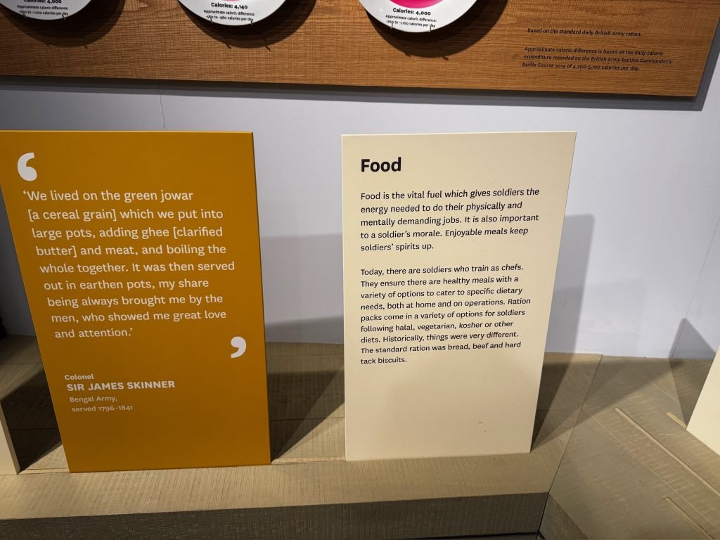 After that, we went through a big gallery with pictures, history, weapons, clothing, sculptures, and some videos. On one of the videos, there were people who had been in the army explaining what war was like—the food they ate, and their everyday life.
