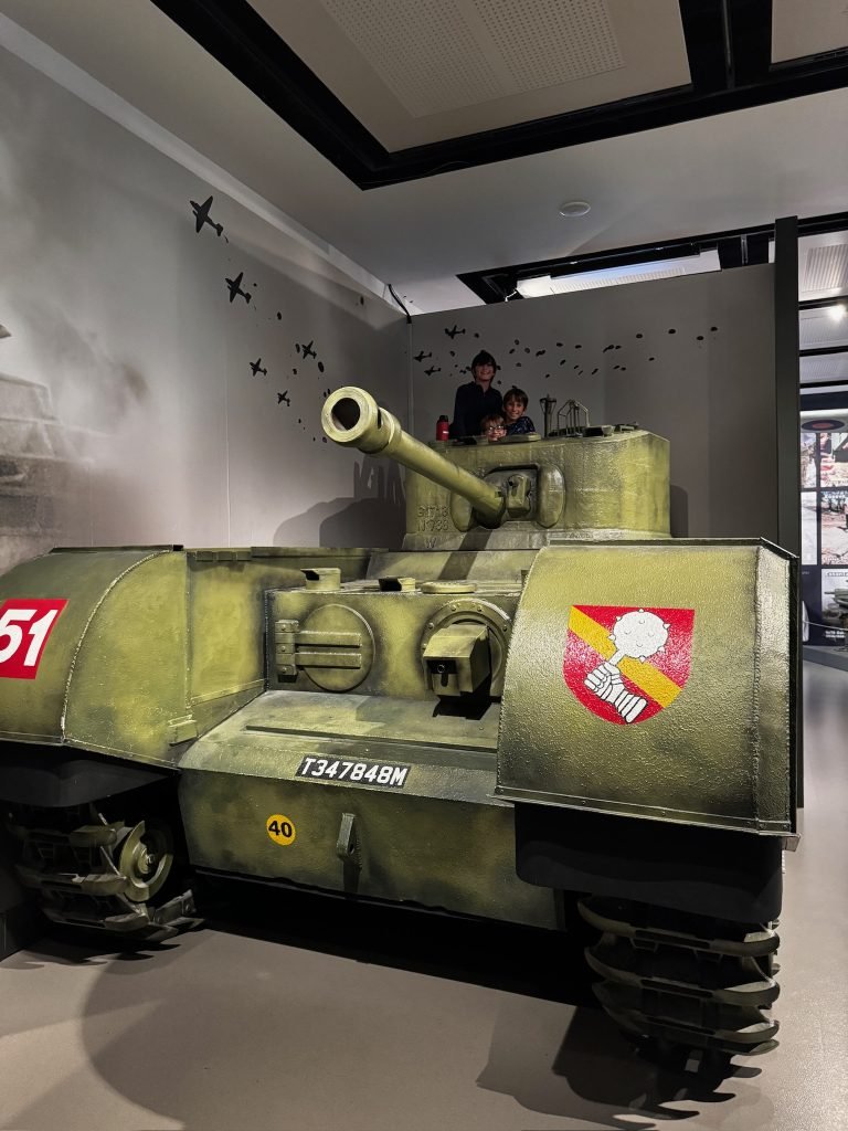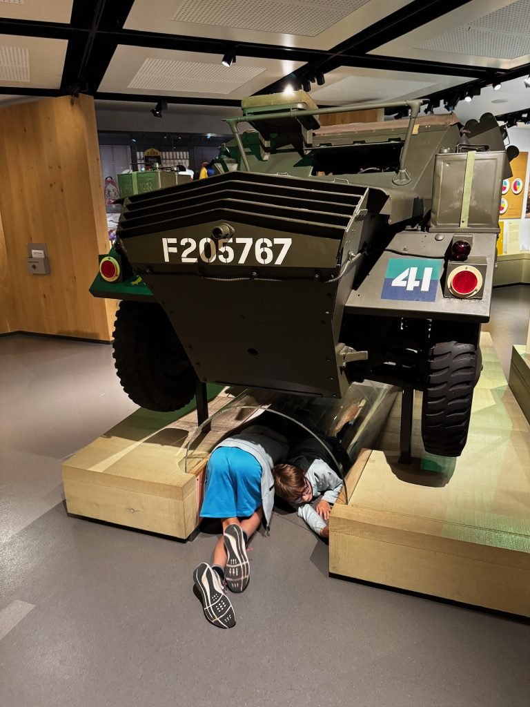 After that, we read even more history. Then we went to a giant section that was just about the Nazis, where we got to go inside of a fake tank, and you were allowed to poke your head out of it. There was also a big glass container filled with terrain, and you could learn the history of different battles.