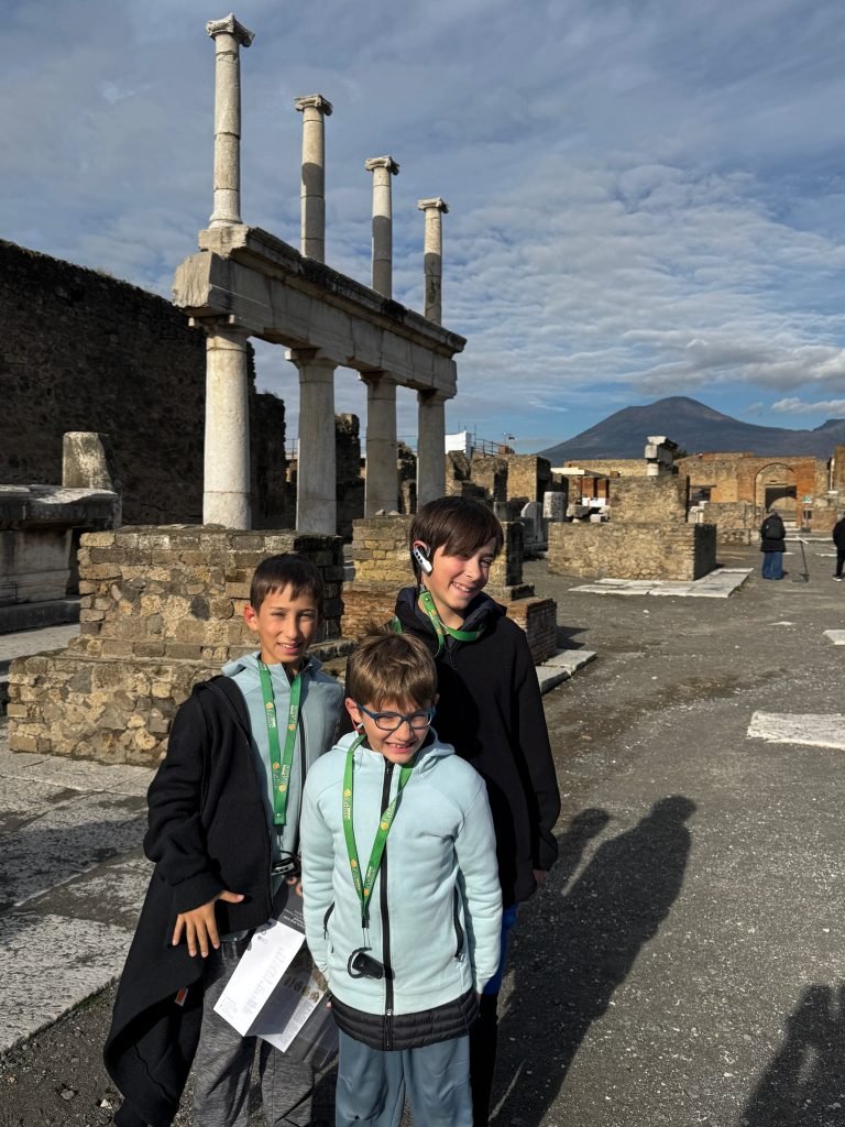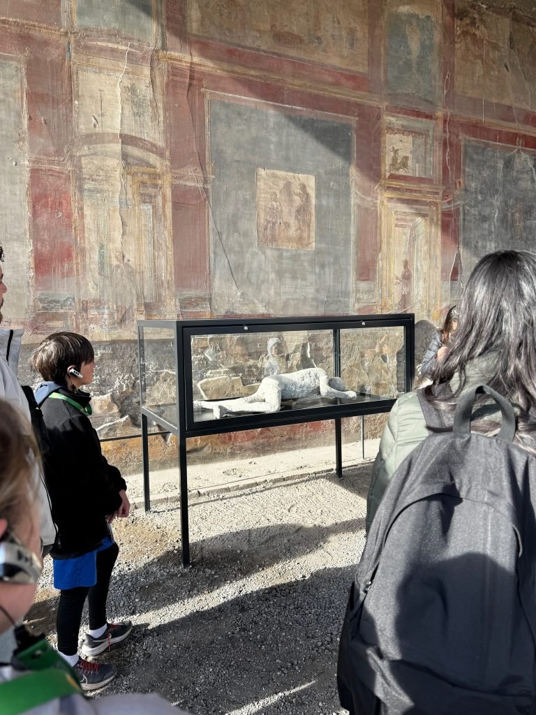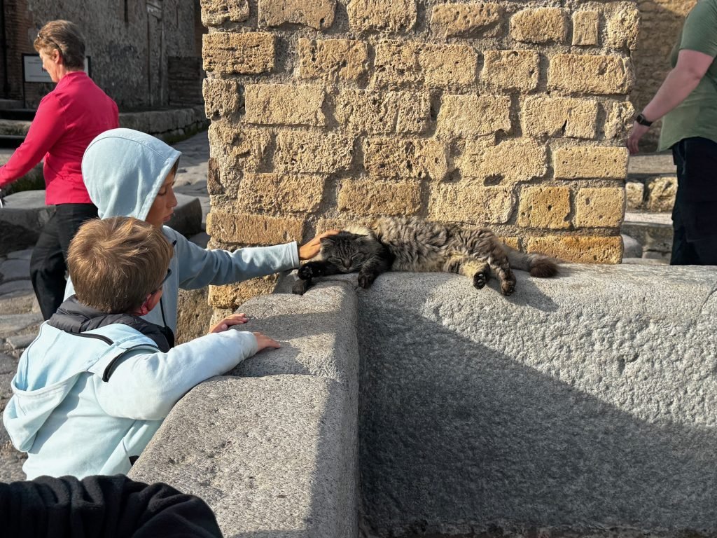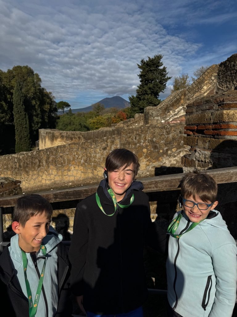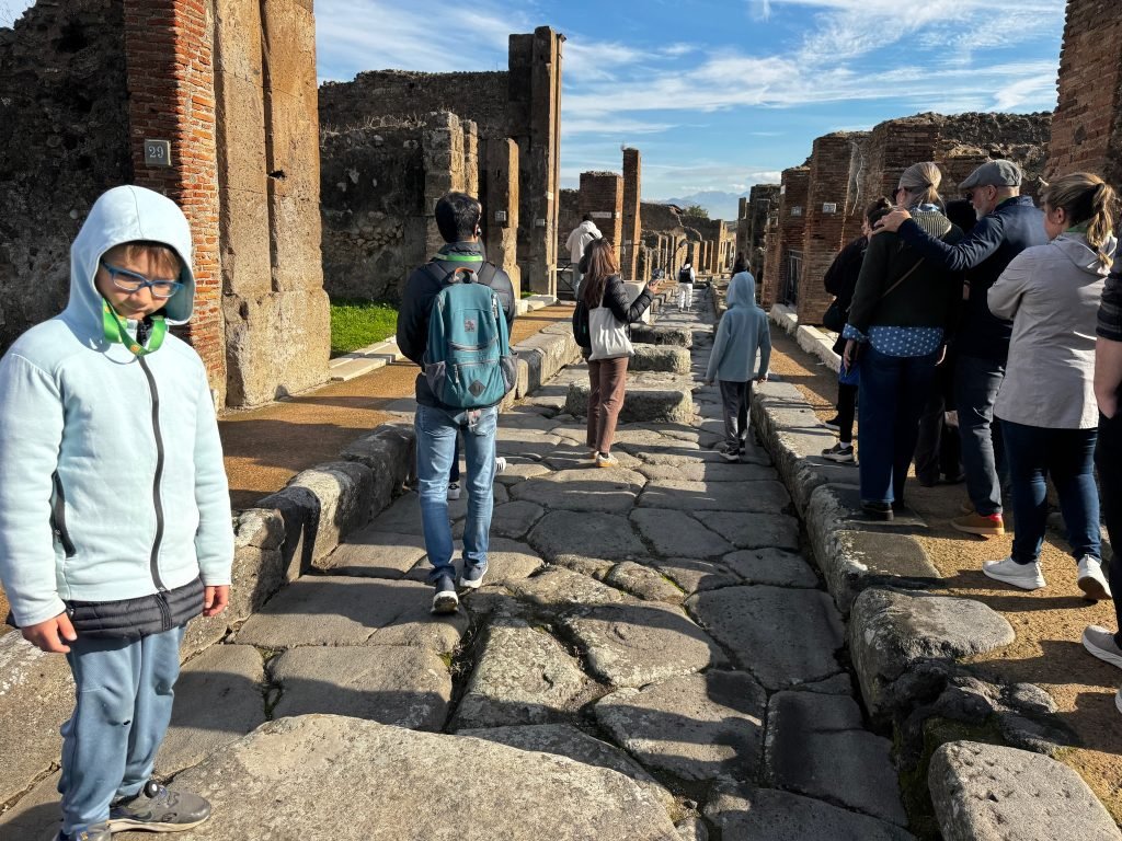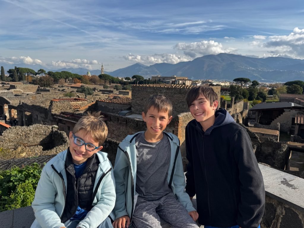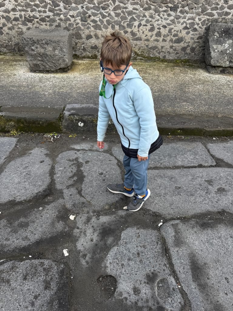 Today we are going to Pompeii and Mount Vesuvius. It is also Nates birthday. One thing Wells and Nate are looking forward to is the cats that live in Pompeii that our guide told us about. There was only about 80 of the mummified corpses left. Also what was cool was that when Pompeii was still a city they used stepping stones to cross the roads because everyone went poo on the roads.