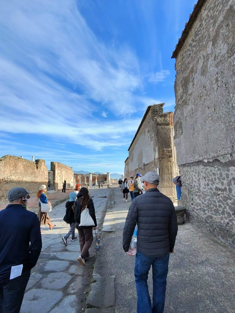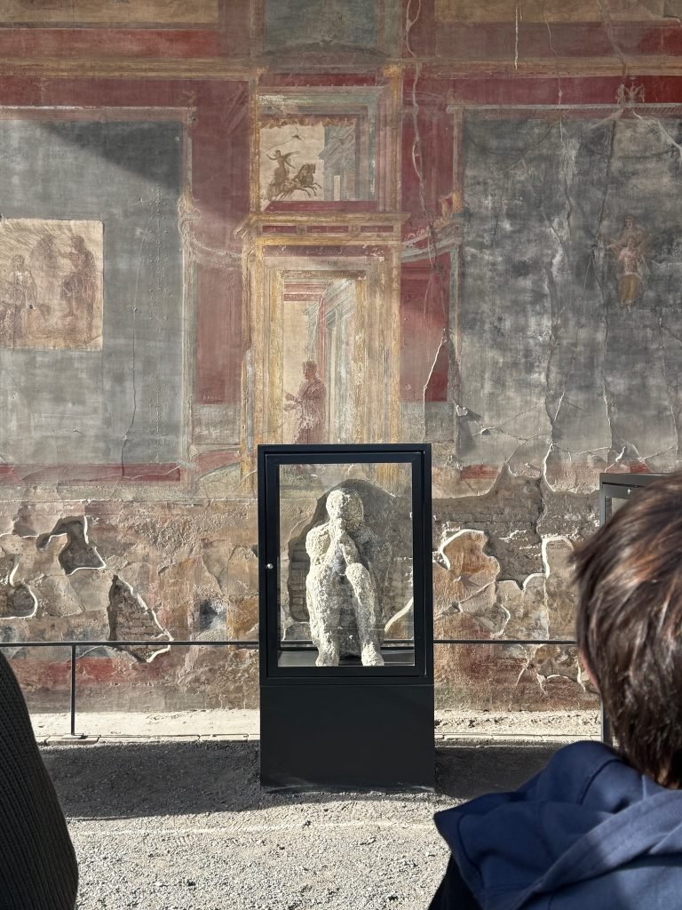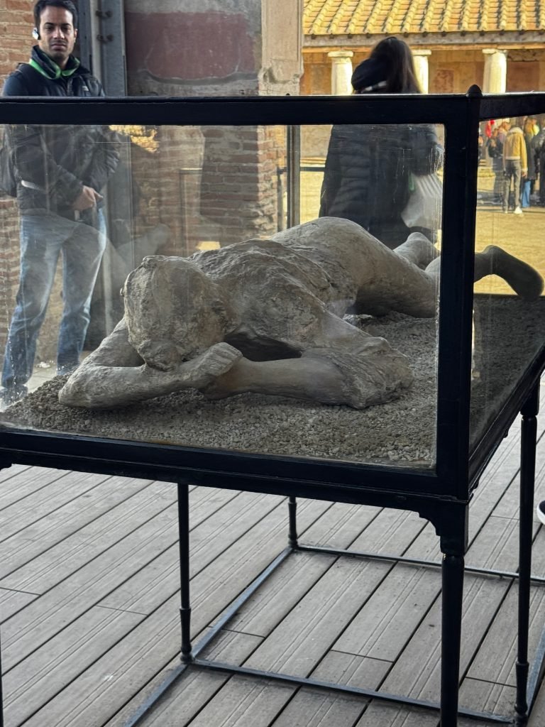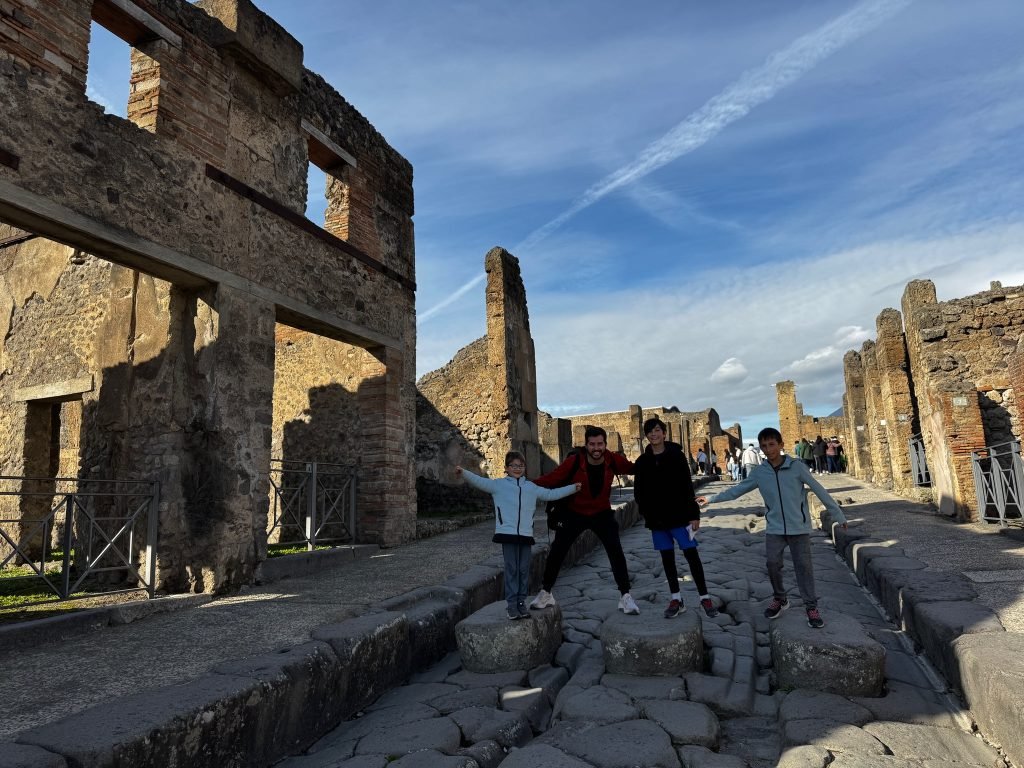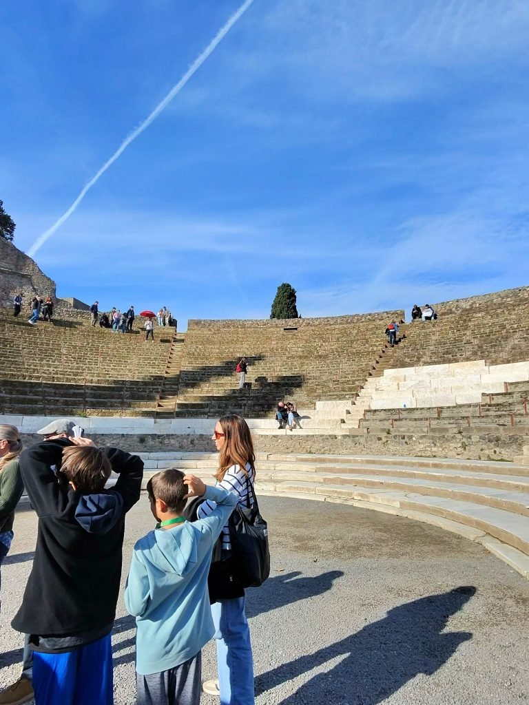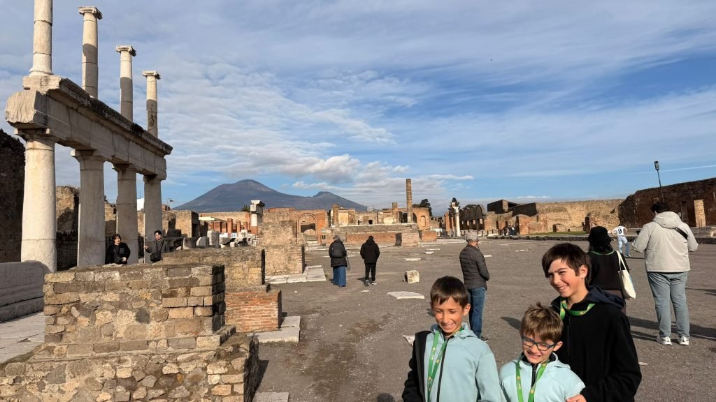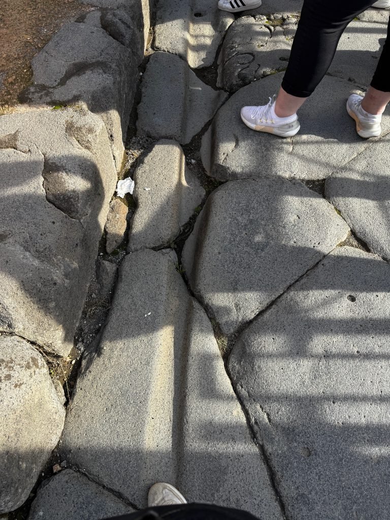 Today we are going to Pompeii and Mount Vesuvius. It is also Nates birthday. One thing Wells and Nate are looking forward to is the cats that live in Pompeii that our guide told us about. There was only about 80 of the mummified corpses left. Also what was cool was that when Pompeii was still a city they used stepping stones to cross the roads because everyone went poo on the roads.