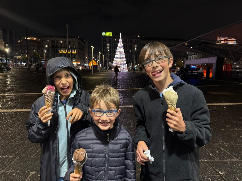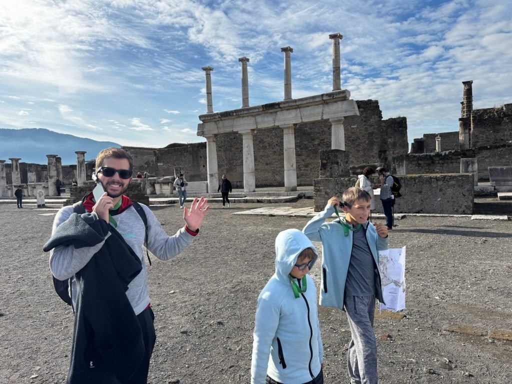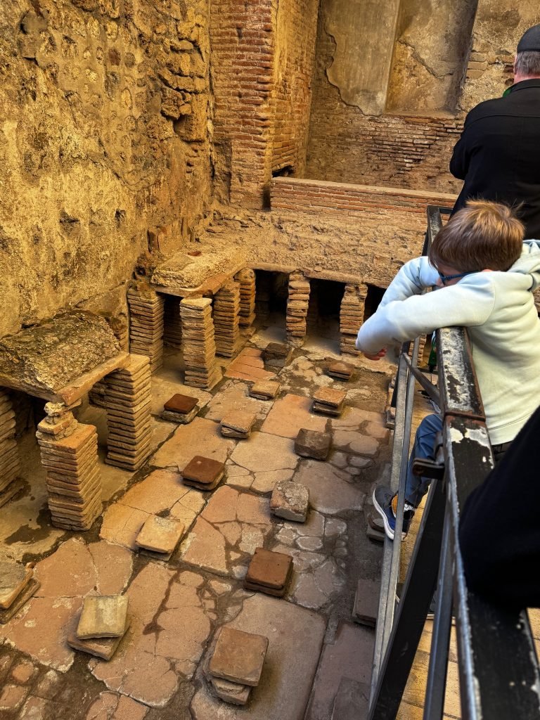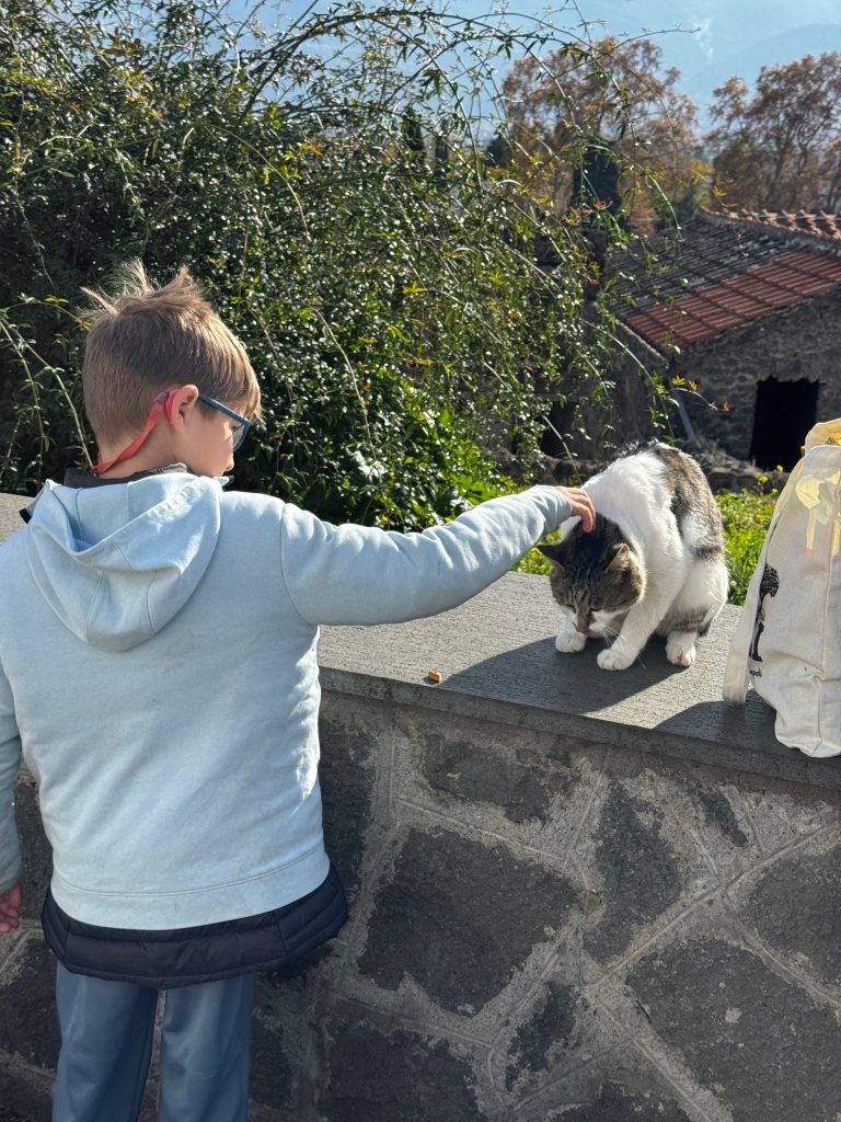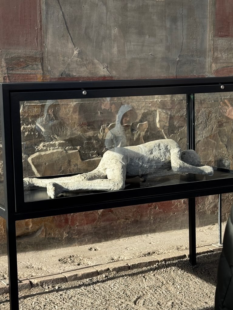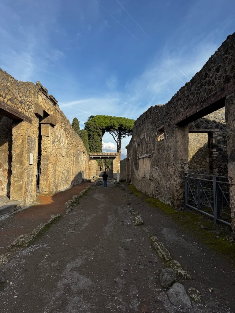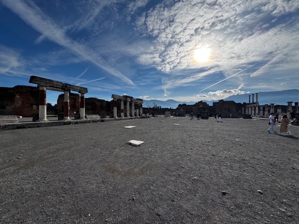 Today we are going to Pompeii and Mount Vesuvius. It is also Nates birthday. One thing Wells and Nate are looking forward to is the cats that live in Pompeii that our guide told us about. There was only about 80 of the mummified corpses left. Also what was cool was that when Pompeii was still a city they used stepping stones to cross the roads because everyone went poo on the roads.