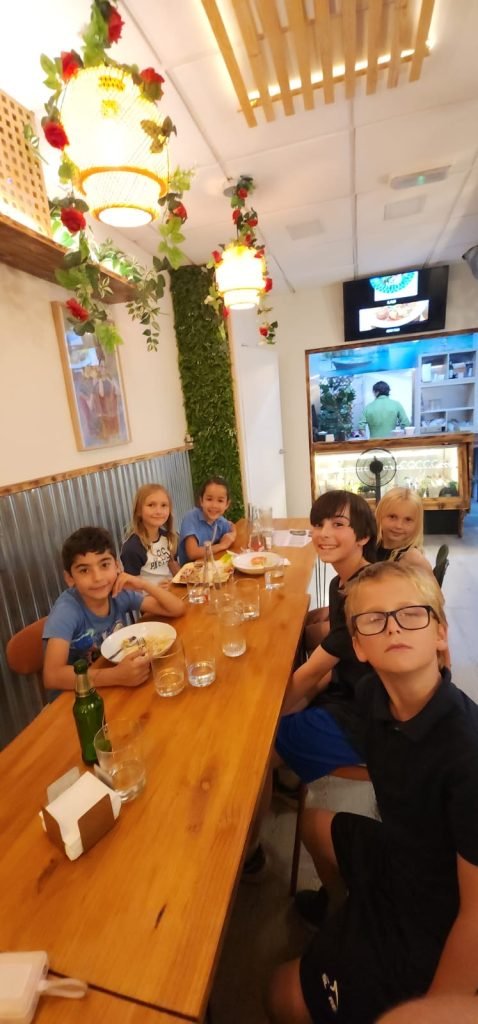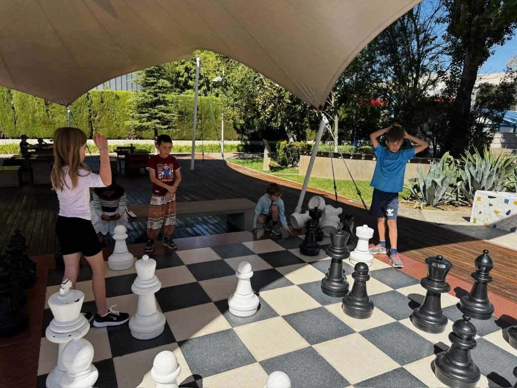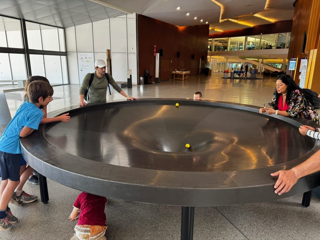We arrived to the sight of many fellow world schoolers playing with a large representation of the gravitational force of a black hole so we did that for some time before it was time for for the Birds of Prey presentation which showcased several interesting birds including a huge owl and vultures that walk despite having wings. We then got food in the museum cafeteria and played on the ‘playground’ which only had one piece of equipment but had many other interesting things including puzzles and a huge chess board. We then entered another exhibit about illusions and machines, my favourites being a mirror that made you look very weird and another, more complicated one, it consists of a chair that you sit on(what else would you do with a chair?) and then hold a spinning bicycle tire which somehow spun the chair around despite not being connected to it at all. Exiting that bit, some people in our group found a secret room with huge pillow letters meant to spell FRATO(as in brother) but we of course turned it into FARTO(as in natural gas if you know what mean💩). The final part was the anatomy section and all I’m going to say about that is we saw some weird stuff. That evening we were going to go to an Indian restaurant with some of our group but sadly Nate got sick and we had to go home. Fortunately, Í still got to go to that but the restaurant was so slow it took an hour and a half for our food to come out.