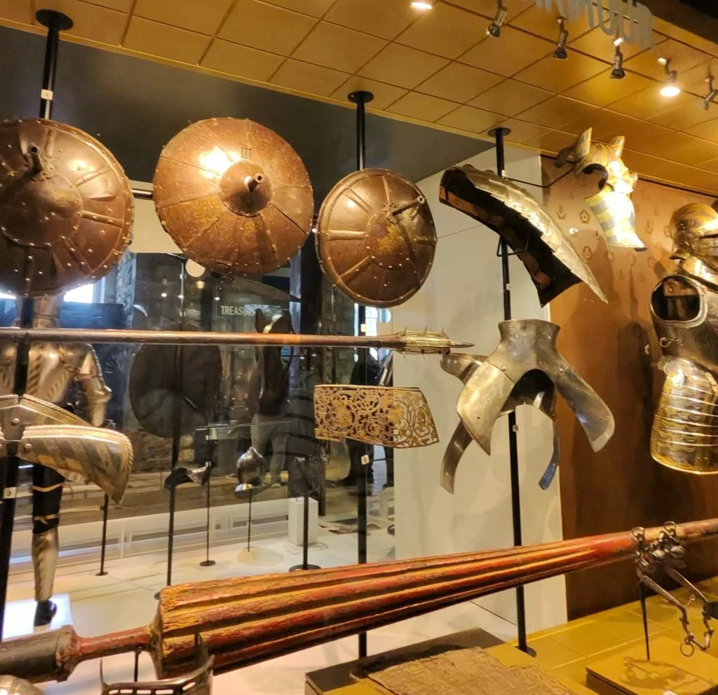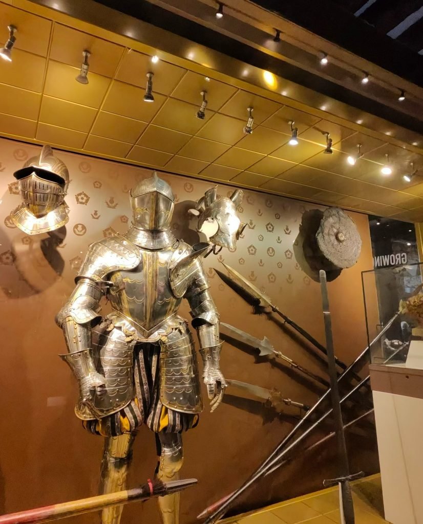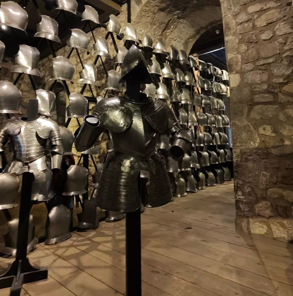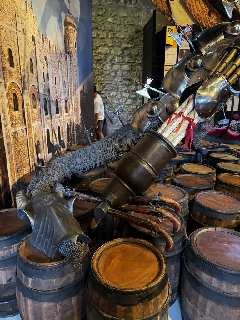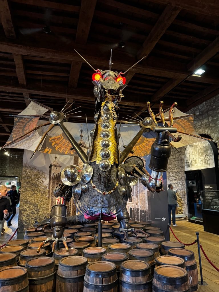 We finally got to visit the not-Tower of London the shortest tower in all of London. We began the day by going on a long series of train rides to the Tower bridge and obviously the Tower of London, we took a short detour to our dad’s old office before entering the Untower(That is actually not a terrible name), as soon as we got in we saw a Yeomen(a medieval men-at-arms ranking) giving a tour so we joined in for a bit(he was very funny) before going our own way to tour several of the more major towers of the castle including the torture chambers. Past all that boring stuff we finally got to enter the central keep: the white tower, which also served as the London Royal Armoury. This was one of my highlights from the London trip as there were just walls and walls of medieval arms and armour, one room even contained a huge dragon model made solely of of different armour and weapons.